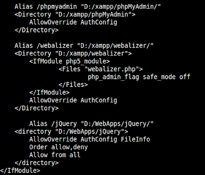 Chỉ cần copy và paste vài thẻ XML trên vào file: D:\xampp\apache\conf\extra\httpd-xampp.conf, nhớ đặt vào giữa thẻ IfModule.